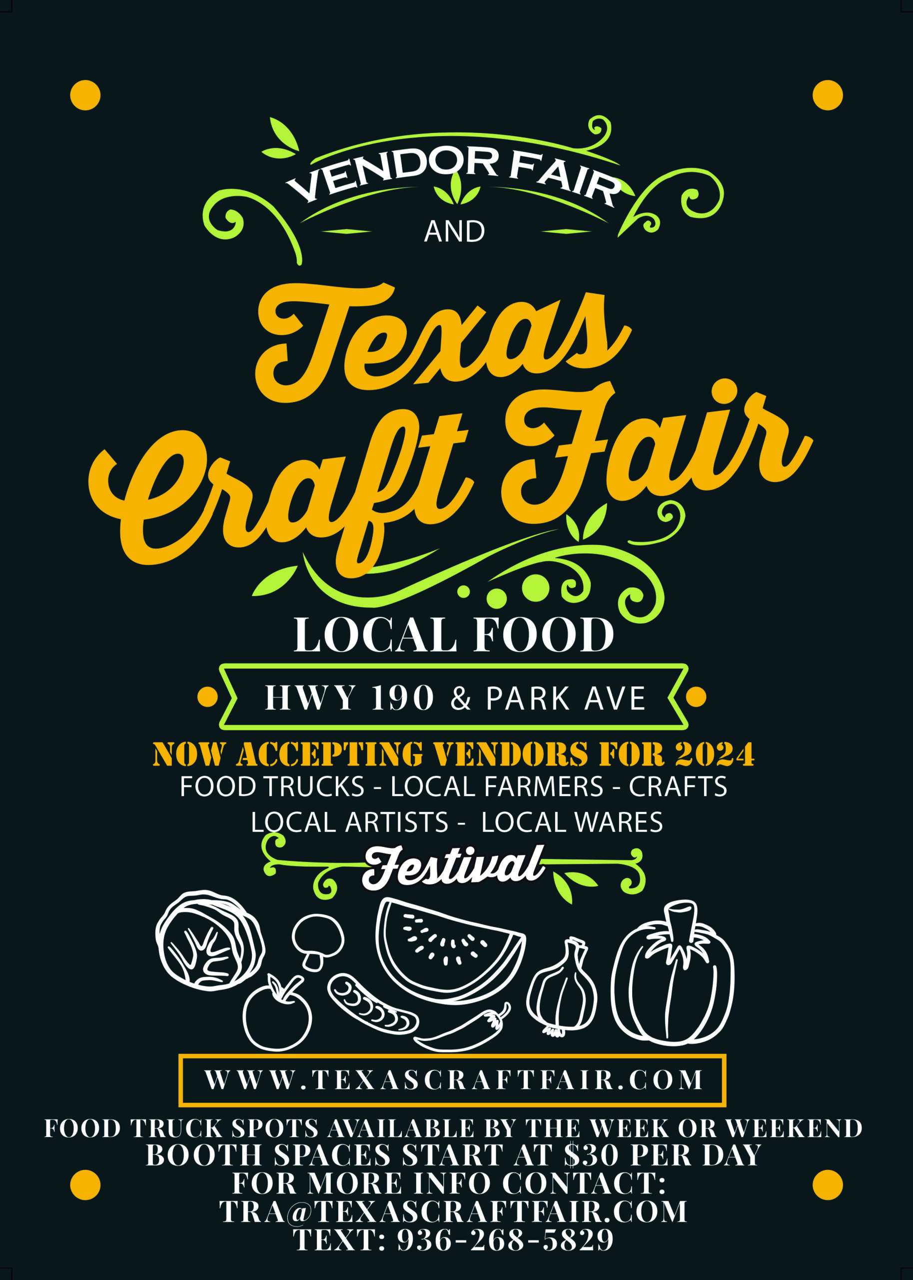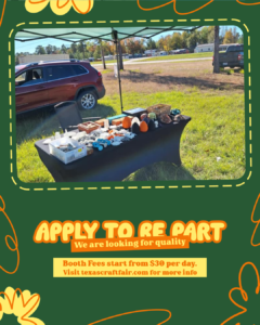 Don’t forget, you can also join us every Friday from 5pm to 9pm, and Saturday from 10am to 4pm for our standard Texas Craft Fair activities. As always, these events feature handmade crafts and a variety of garage sale finds.
